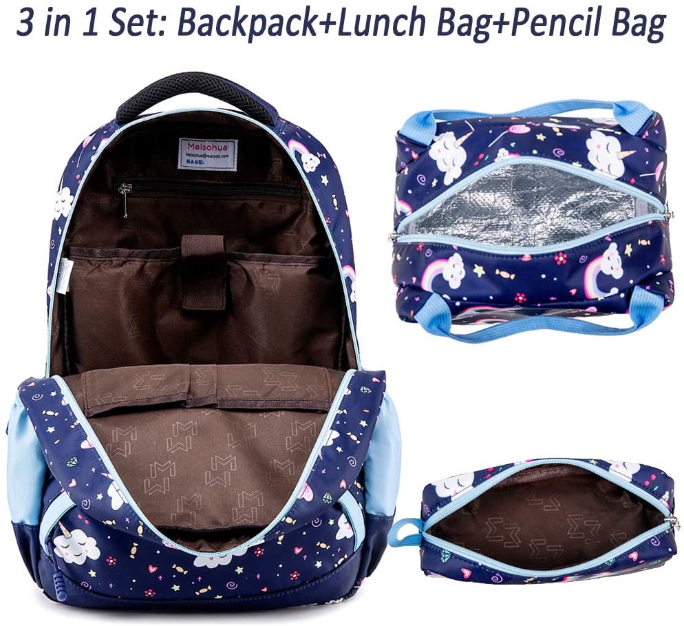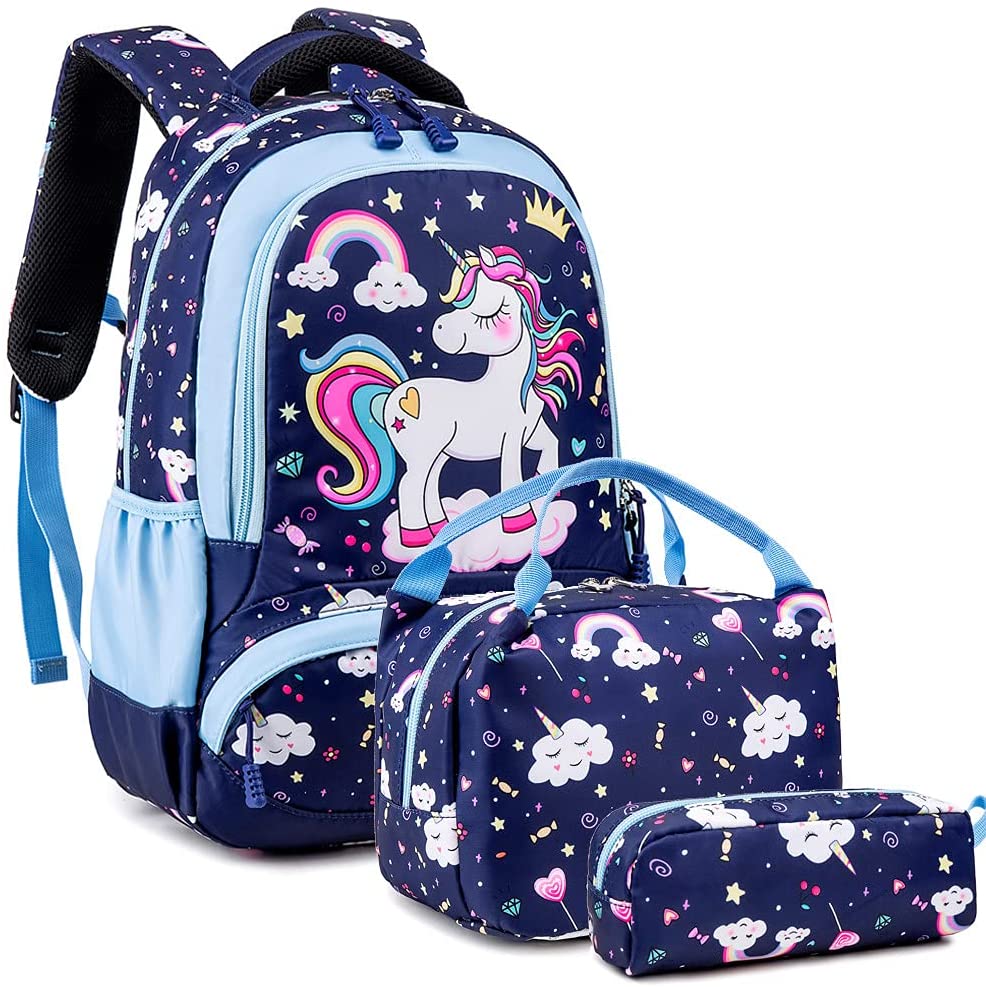 Mochila unicórnio: as mochilas escolares primárias 3 em 1 vêm com mochila para meninas, lancheira térmica.