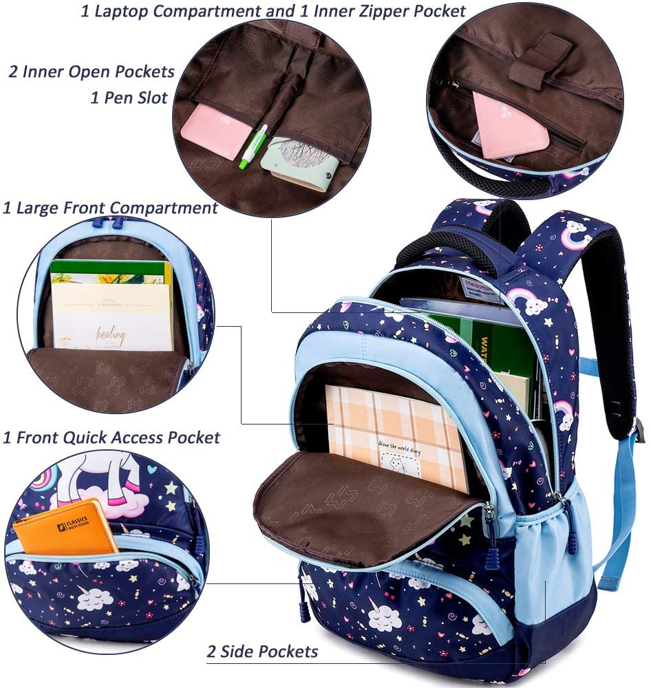 Grande capacidade: o tamanho da mochila para meninas é de 29,2 x 13 x 38 cm, cerca de 13 a 15 litros, mochila escolar com bolsos multiúsos, espaçosa para as meninas levarem tudo o que precisam para a escola.