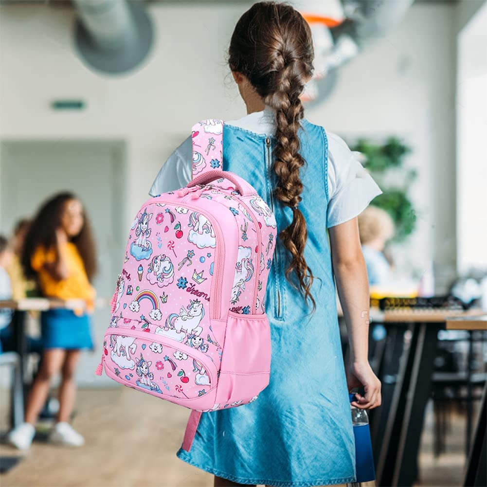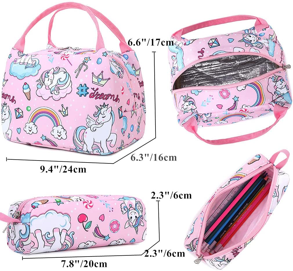 Mochila unicórnio: as mochilas escolares primárias 3 em 1 vêm com mochila para meninas, lancheira térmica.