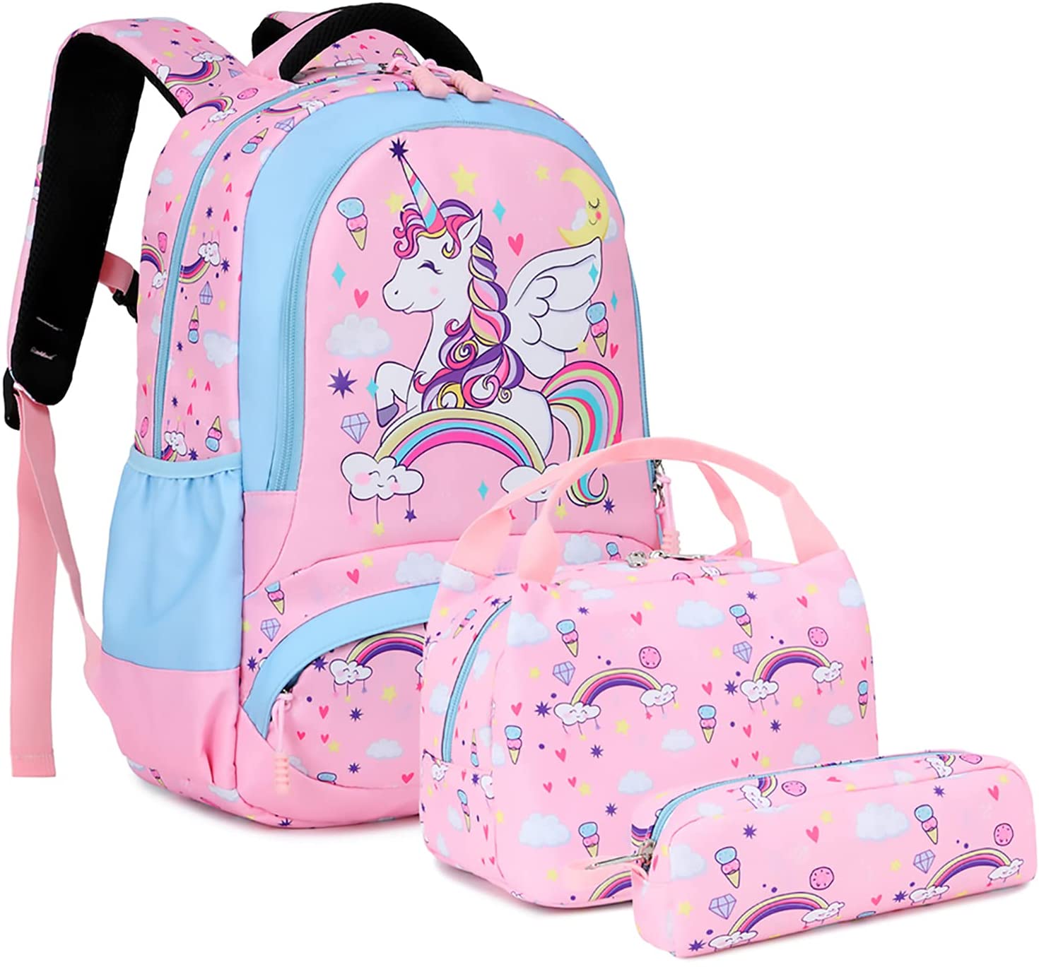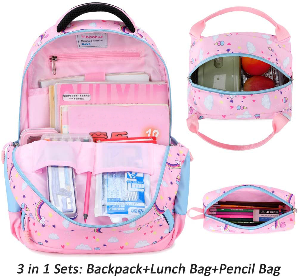 Mochila unicórnio: as mochilas escolares primárias 3 em 1 vêm com mochila para meninas, lancheira térmica.
