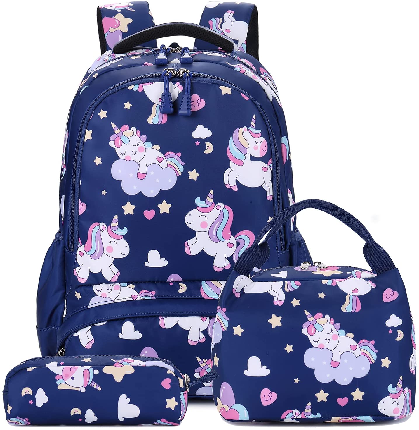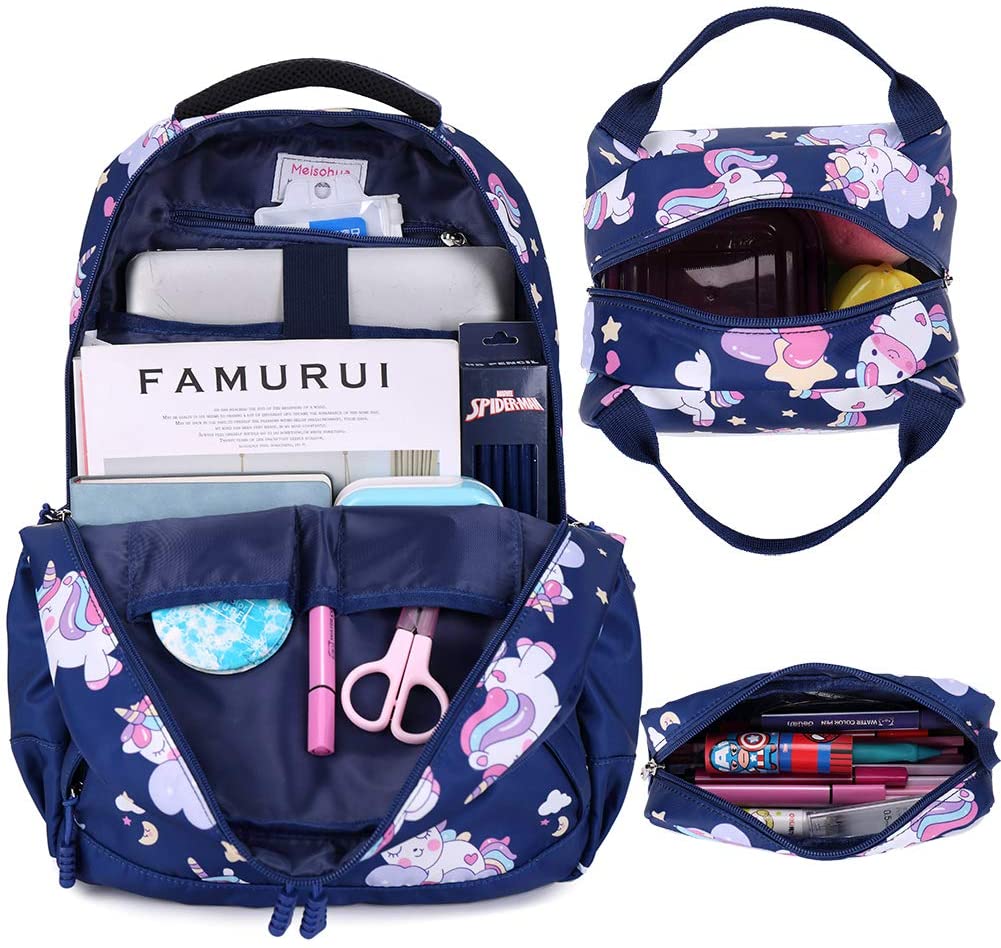 Mochila unicórnio: as mochilas escolares primárias 3 em 1 vêm com mochila para meninas, lancheira térmica.