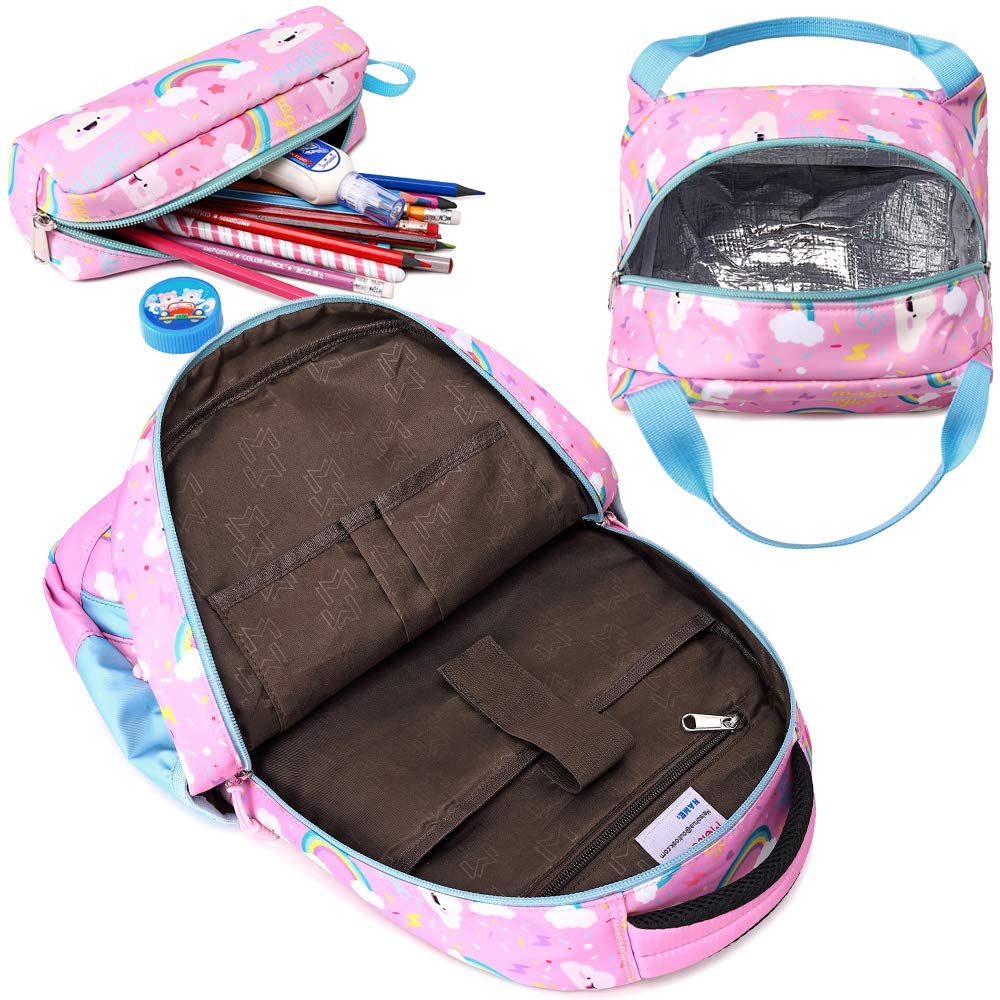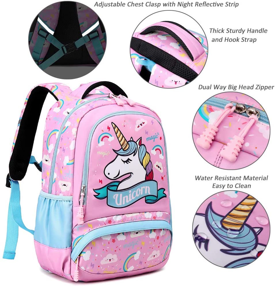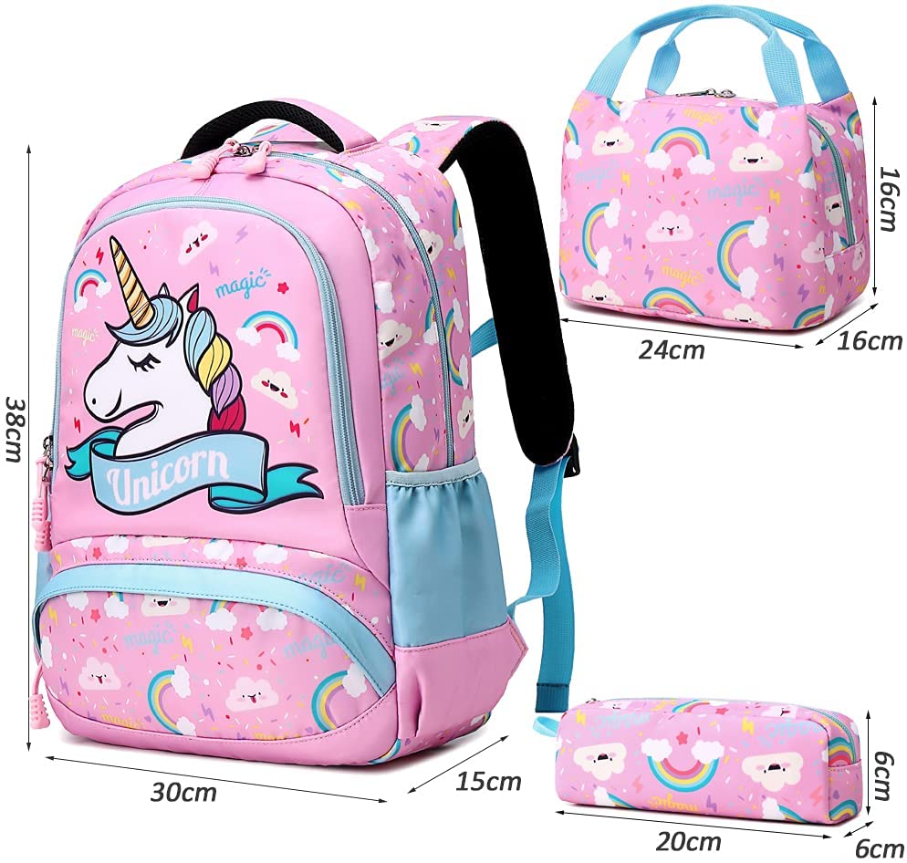 Mochila unicórnio: as mochilas escolares primárias 3 em 1 vêm com mochila para meninas, lancheira térmica.