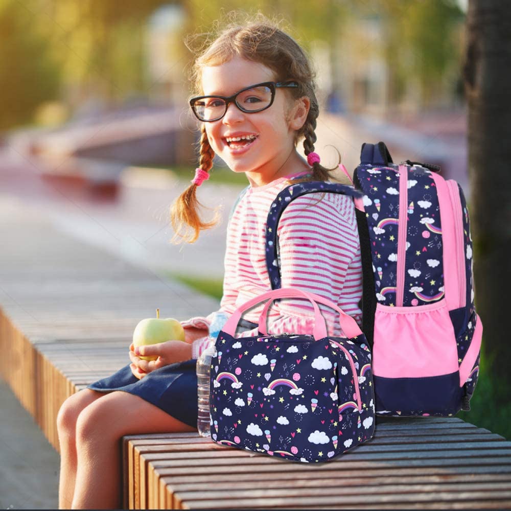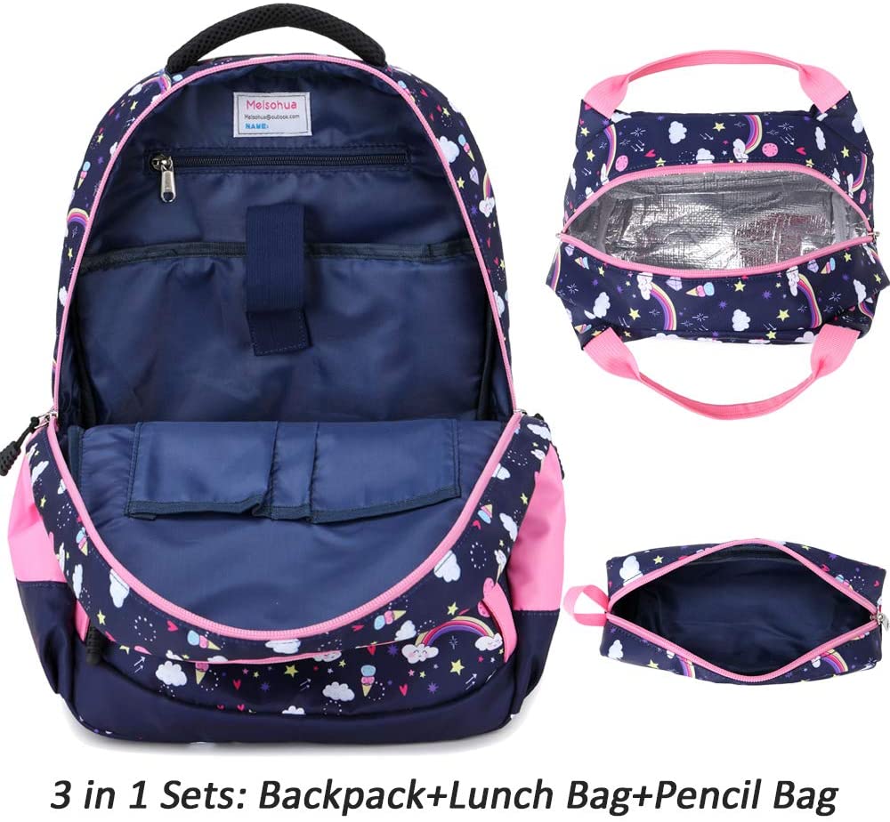 Mochila unicórnio: as mochilas escolares primárias 3 em 1 vêm com mochila para meninas, lancheira térmica.
