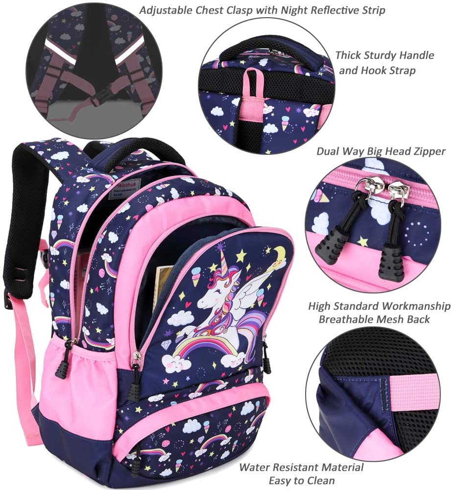 Grande capacidade: o tamanho da mochila para meninas é de 30 x 15 x 38 cm, cerca de 13 a 15 litros, mochila escolar com bolsos multiúsos, espaçosa para as meninas levarem tudo o que precisam para a escola. Modelo impermeável