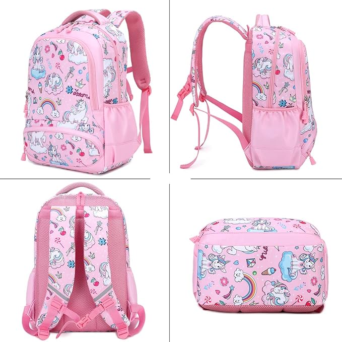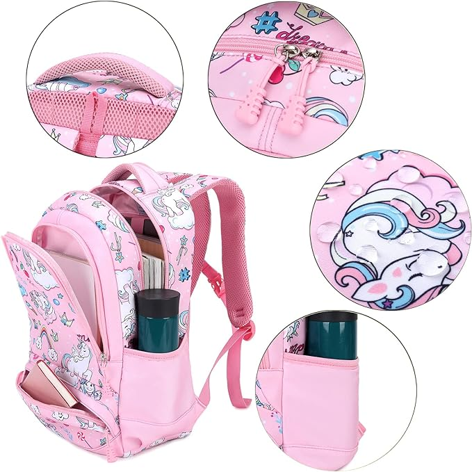 Grande capacidade: o tamanho da mochila para meninas é de 30 x 15 x 38 cm, cerca de 13 a 15 litros, mochila escolar com bolsos multiúsos, espaçosa para as meninas levarem tudo o que precisam para a escola. Modelo impermeável