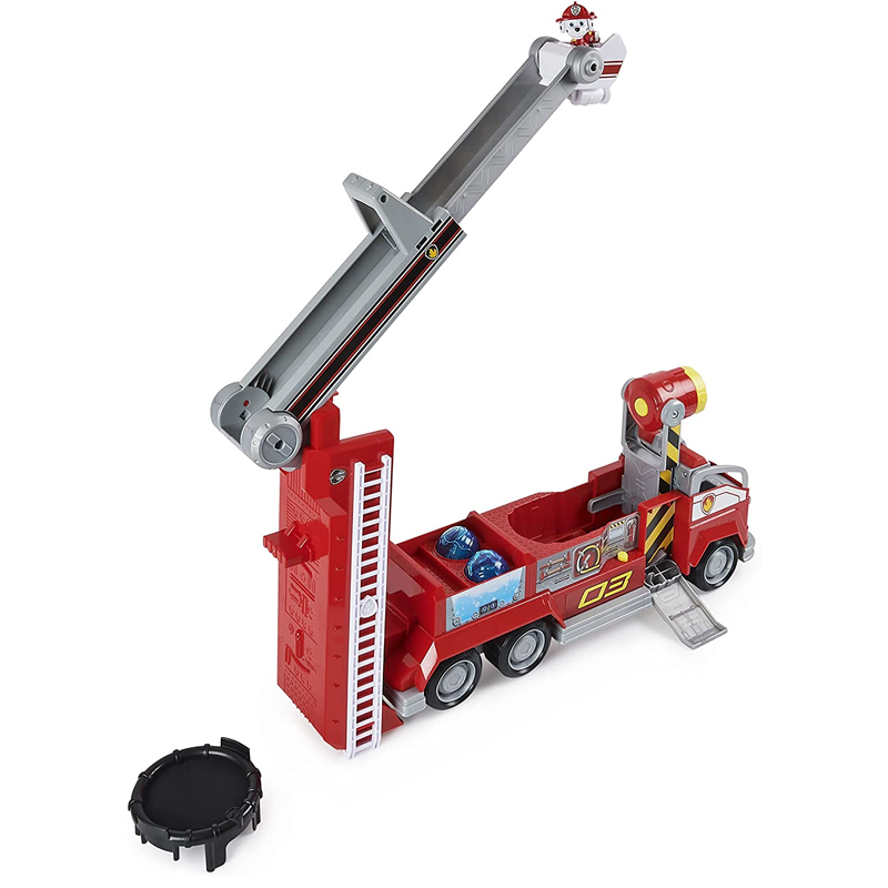 Resgate a cidade Aventura com o novo camião de bombeiros de Marshall com dupla transformação e resgate épicos com a escada mais alta da história, uma rede de segurança, um canhão de água enorme e luzes e sons reais. Salve o dia com este fantástico camião de bombeiros de dupla transformação da Marshall. Inclui: 1 camião Marshall, 1 boneco de Marshall, 1 rede de segurança, 1 cano de água.