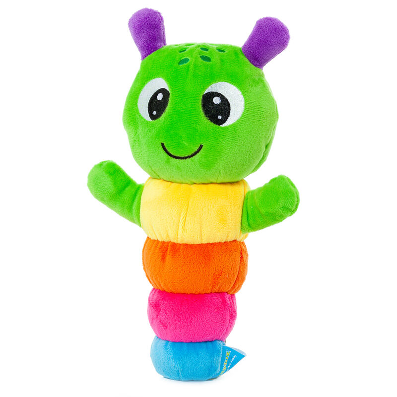 Idade: 0 meses. Pelúcia minhoca, esse grande amigo do Gusy Luz toca uma de suas 3 melodias diferentes quando você aperta uma de suas mãozinhas e acende suas luzes relaxantes quando você aperta a outra. Acompanhará o seu bebê durante todo o dia e noite.