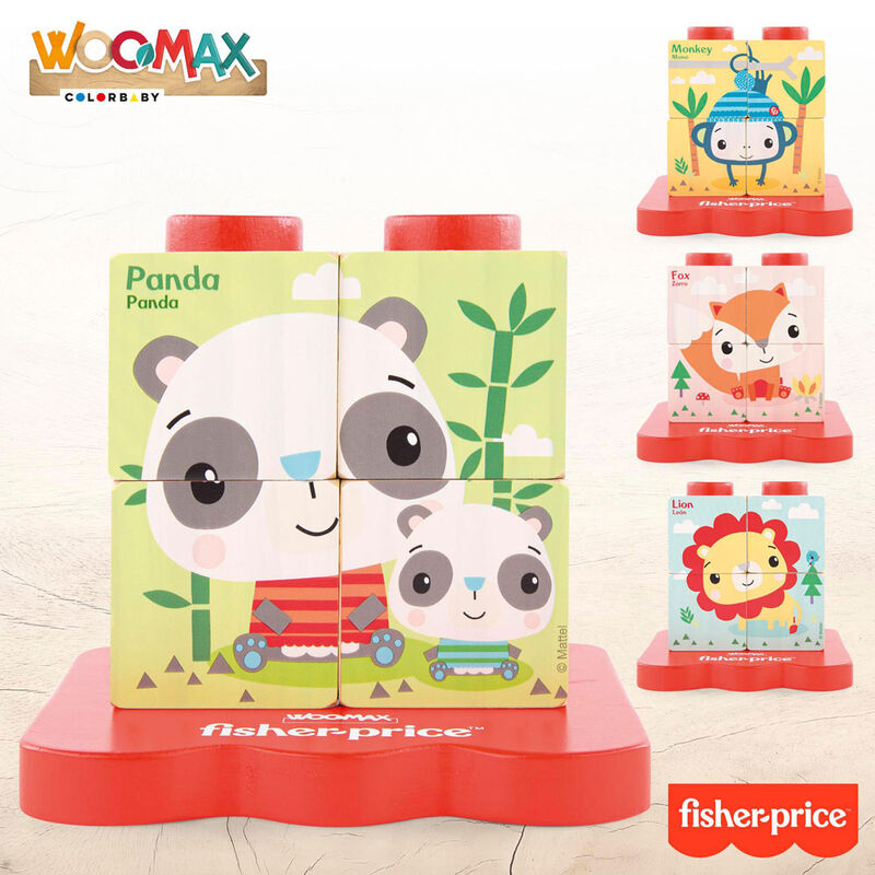 Idade: +2 anos. Combine as peças para descobrir quem está por trás deste quebra-cabeça. Este quebra-cabeça de madeira é composto por 4 cubos de madeira com 4 imagens diferentes de animais.