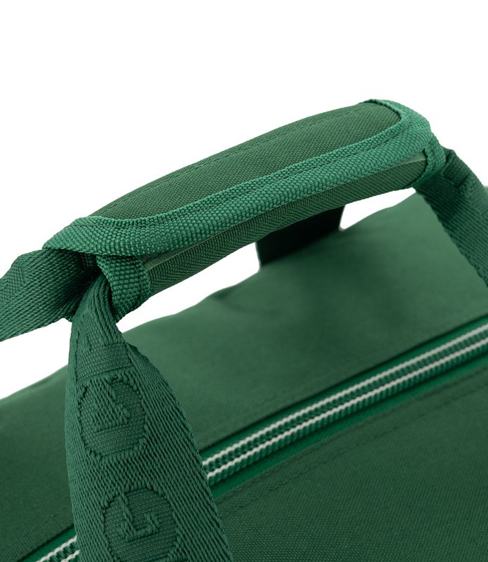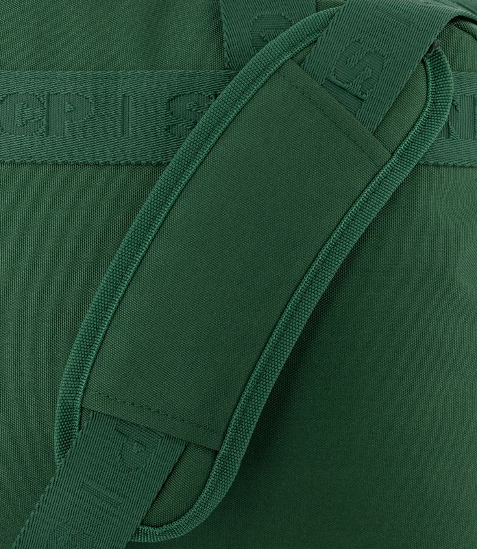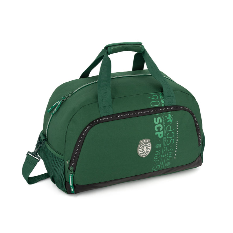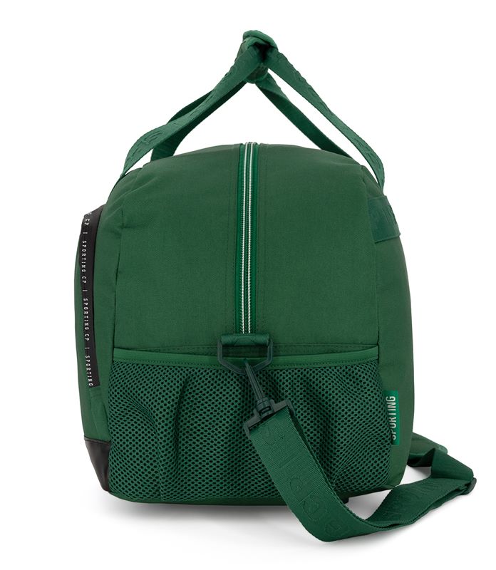 Saco de desporto Sporting CP com grande capacidade. Em poliéster verde resistente. Base em napa preta. Fecho frontal com lettering Sporting CP e precintas personalizadas robustas.
