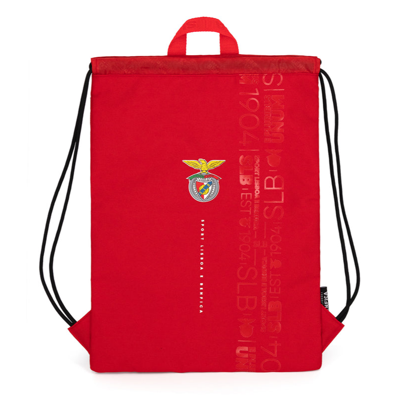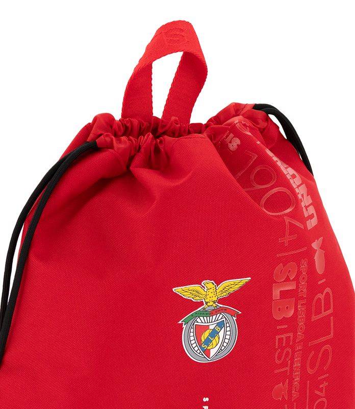 Saco de ginásio/sapatos leve SL Benfica é fabricado em poliéster vermelho resistente, com um design prático e funcional. Inclui um bolso traseiro com fecho. Alças em cordão grosso e asa em precinta personalizada para transporte e pendurar.
