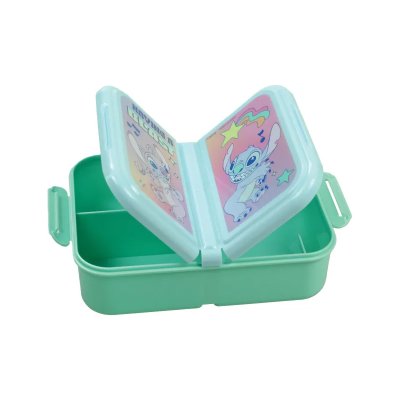 Com esta caixa de lanches dinâmica "Having a blast" da Stitch, as refeições se tornam um verdadeiro momento de bom humor! Perfeita para levar as crianças à escola, em passeios ou em um piquenique, ela tem um tamanho compacto de 18,5 cm x 13,5 cm, além de oferecer bastante espaço interno. Graças aos seus 3 compartimentos, permite armazenar diferentes tipos de alimentos separadamente: frutas, biscoitos, sanduíches ou pequenas guloseimas ficam bem organizadas, para um lanche variado e apetitoso.