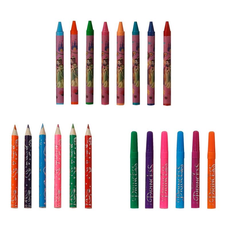O conjunto de colorir mais completo! Dê asas à sua criatividade e tenha horas de diversão para colorir e adesivos com 35 páginas para colorir e 76 stickers, além de uma ampla paleta de lápis, lápis de cera e marcadores!