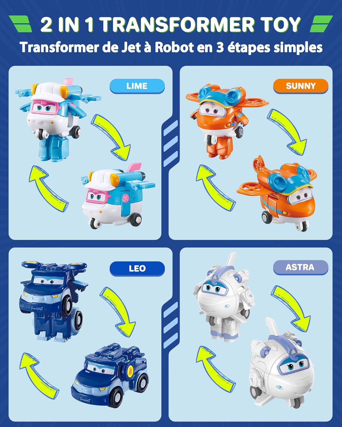 Mais integração entre pais e filhos - junte-se a Jett e aos seus adoráveis amigos transformáveis enquanto jogam as missões da série de TV. A Super Wings espera proporcionar aos pais mais oportunidades de interação entre pais e filhos. É uma empresa profissional de brinquedos dedicada à produção de brinquedos de qualidade para promover a criatividade, a imaginação e as habilidades práticas das crianças.