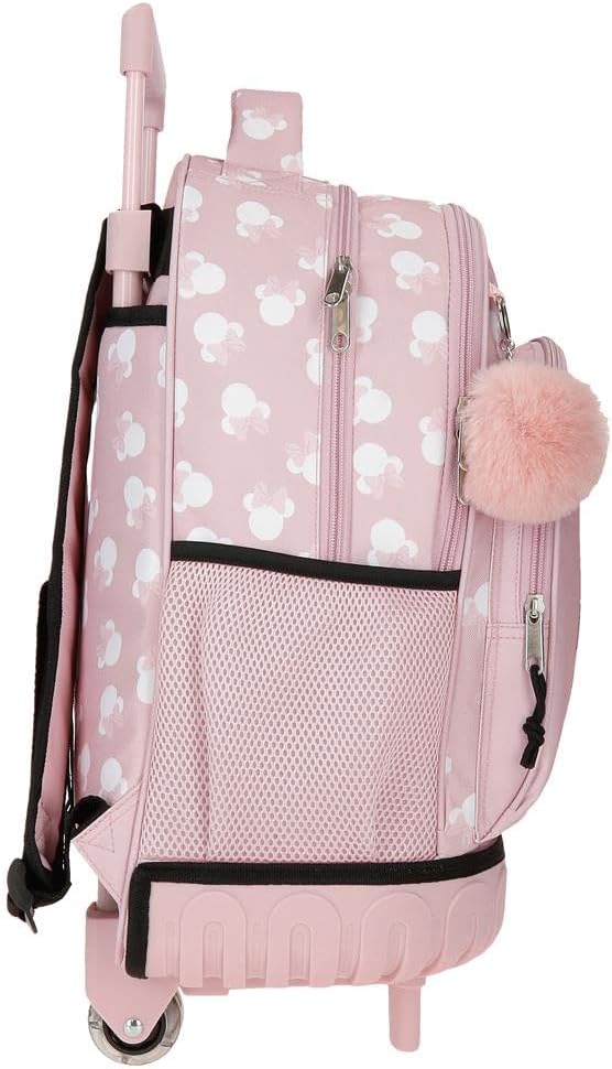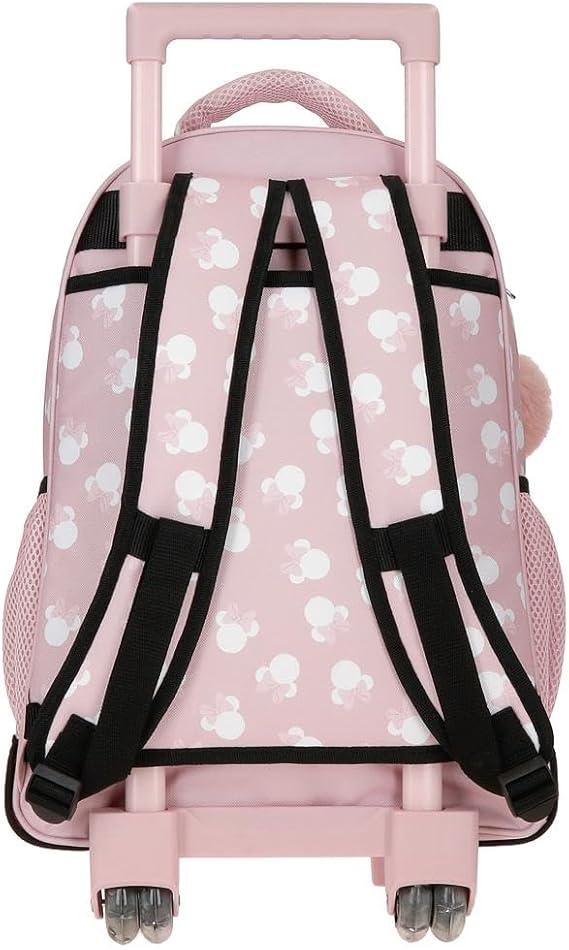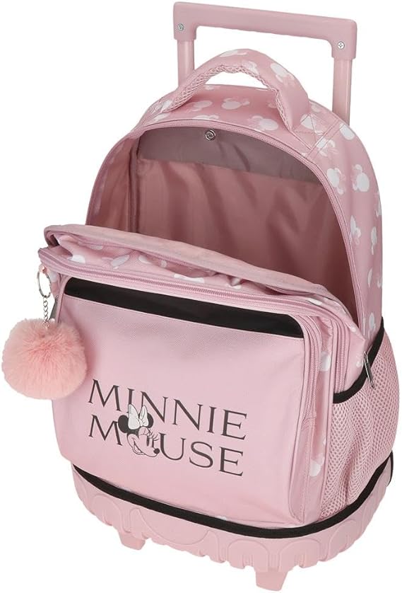 Dois compartimentos ideais para organizar livros, cadernos, pastas e pastas de tamanho DIN A4. Bolso frontal para pequenos acessórios e material escolar e dois bolsos laterais para guardar a garrafa e o guarda-chuva.