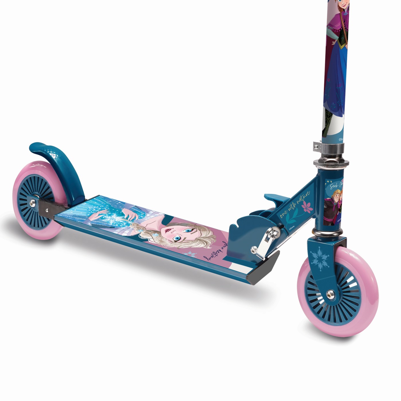 Trotinete Frozen de 2 rodas para infinitas horas de diversão com sua heroína favorita! Suba nos patins e faça passeios intermináveis! A scooter contém uma base antiderrapante e um freio para máxima segurança. Dobra e desdobra facilmente. Possui altura ajustável no guiador. Destina-se a crianças com mais de 5 anos e peso corporal até 50 kg.